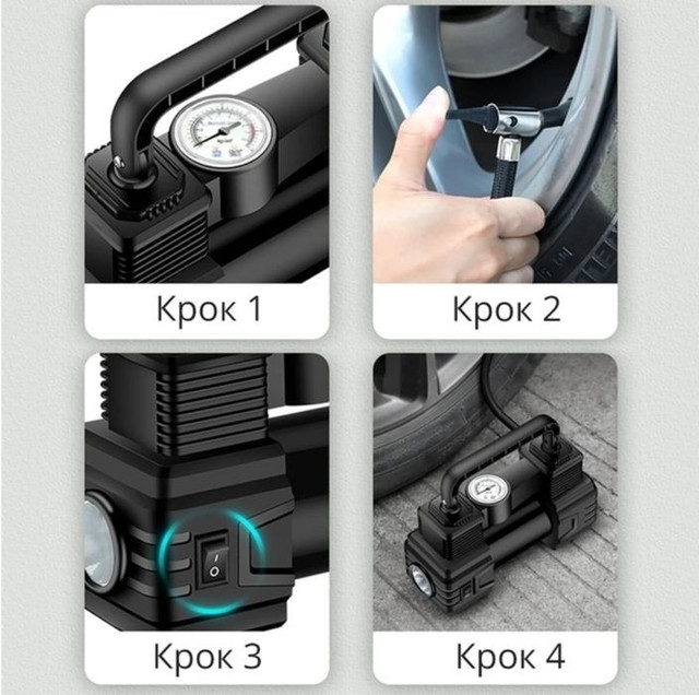 Компактний розмір і легка вага роблять компресор зручним для зберігання в багажнику та перевезення. Міцний корпус з ABS-пластику та металу гарантує довговічність і стійкість до пошкоджень. Багатофункційний комплект насадок розширює можливості використання, перетворюючи пристрій на універсальний аксесуар для автомобіліста.