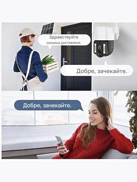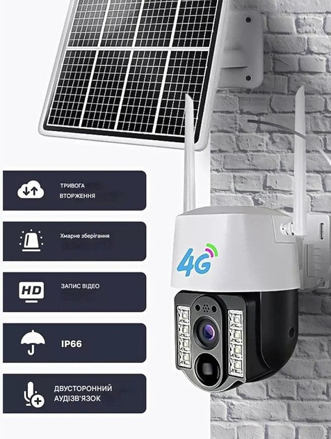 Інтелектуальний датчик руху PIR + Radar миттєво надсилає повідомлення на смартфон у разі виявлення активності. Двосторонній звук із вбудованим мікрофоном і динаміком дає змогу спілкуватися з відвідувачами або контролювати те, що відбувається на об'єкті. Міцний корпус із захистом IP66 гарантує довгий термін експлуатації та надійність камери за будь-яких погодних умов.