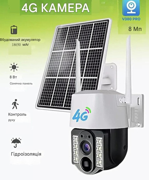 4G під'єднання через SIM-картку, віддалений доступ через застосунок V380 PRO