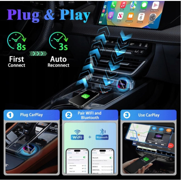 Перетворює дротовий CarPlay на бездротове без складного налаштування