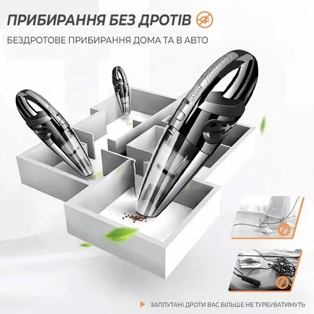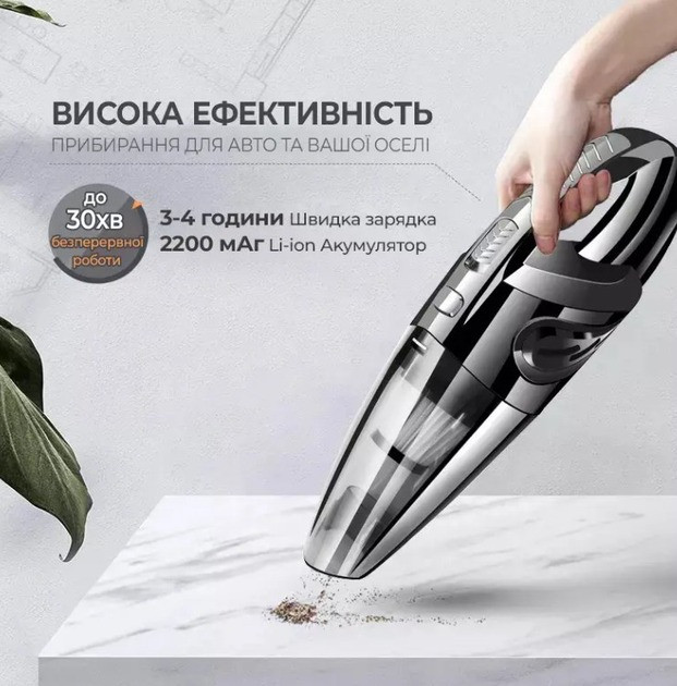 Акумулятор до 20 хвилин роботи — вистачає на повне прибирання салону автомобіля або невеликої кімнати.