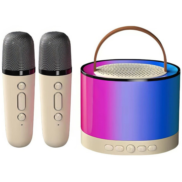 Колонка портативна Bluetooth з 2 караоке мікрофонами K52 Бежева Колонка RGB з підсвіткою