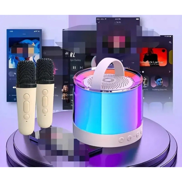 Караоке-колонка K52 — це портативна Bluetooth-система з двома мікрофонами, яскравою 7-колірною LED-підсвіткою і потужним звуком, що ідеально підходить для домашніх вечірок і виїзних заходів.