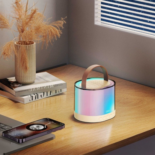 Бежева Bluetooth колонка K52 для караоке, з RGB підсвічуванням