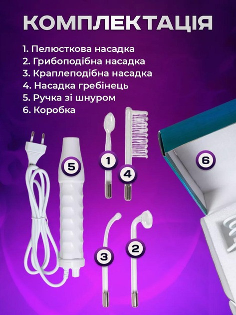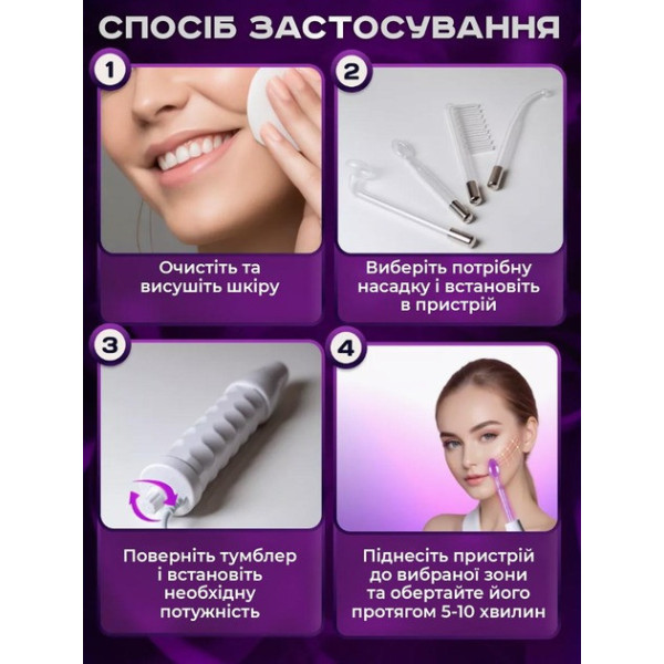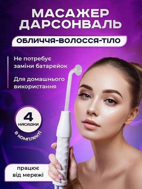 Дарсонваль для обличчя та волосся з 4 насадками, компактний косметологічний прилад для дому