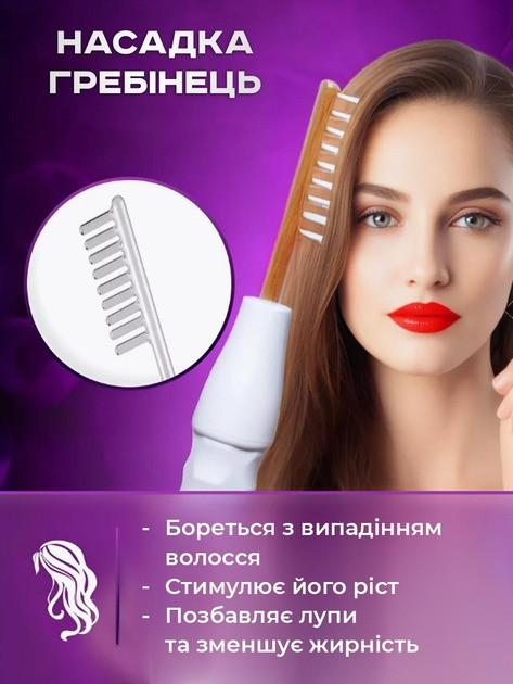 Електрод-гребінь — стимулює шкіру голови, покращує кровообіг, закриває кутикулу волосся, зменшує випадіння та прискорює ріст волосся.