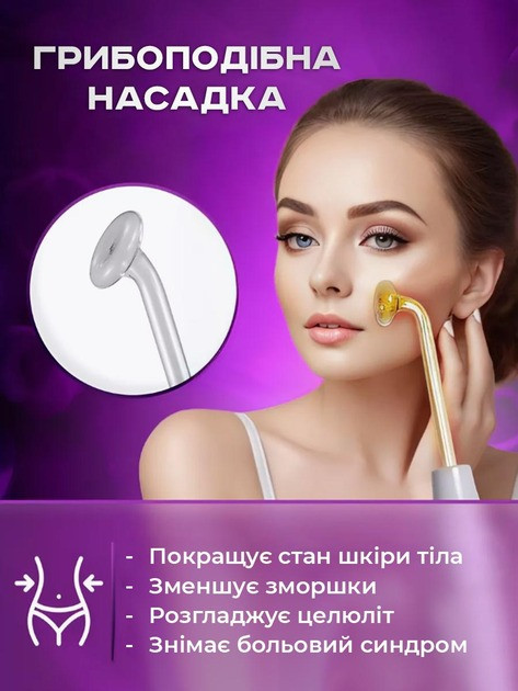 Грибовидний електрод — для обличчя, декольте та спини; дезінфекція, зменшення пор, покращення тонусу шкіри.
