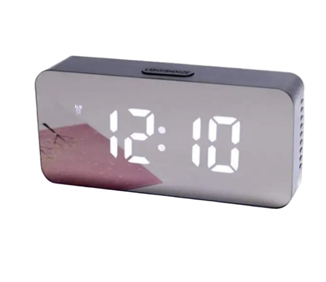 Дзеркальні настільні LED-годинники 1826 9089 з будильником і білою підсвіткою, живлення від USB і батарейок