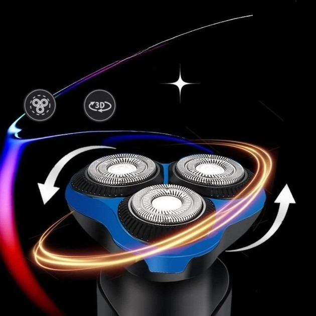 Акумуляторна електробритва Geemy GM-9010 — це і зручний інструмент для догляду за обличчям із трьома плавальними головками, які ідеально підлаштовуються під контури обличчя, шиї та підборіддя.