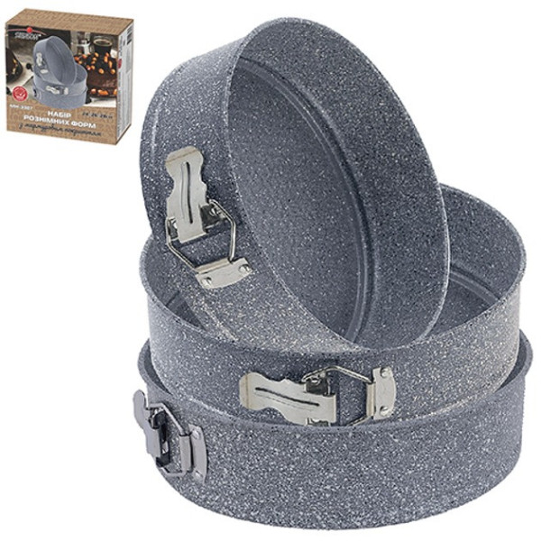 Форма доступна в трьох розмірах — 24 × 6, 3 см, 26 × 6, 3 см і 28 × 6,3 см — що дає змогу підібрати оптимальний варіант для різних рецептів і кількості порцій. Вона підходить для випікання кексів, пирогів, десертів та інших солодких і несолодких виробів.