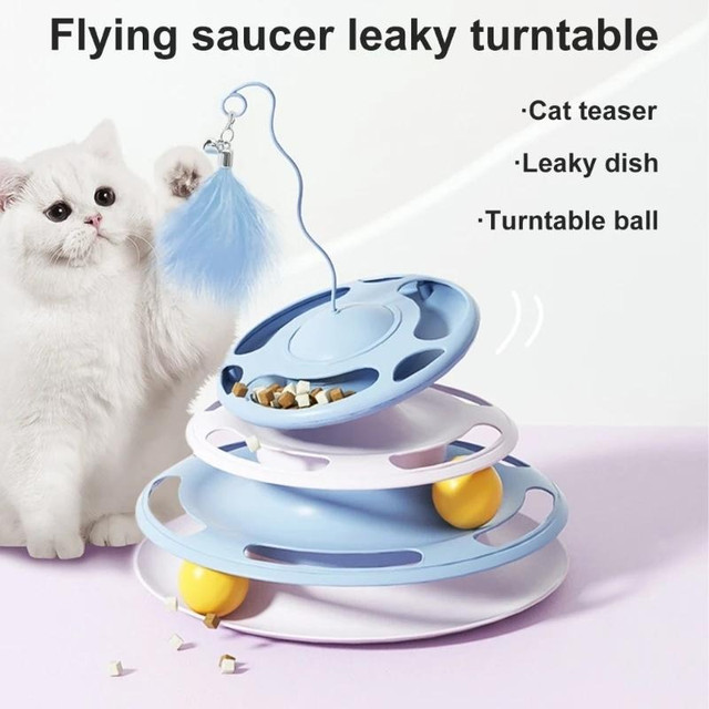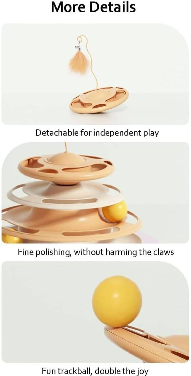 Інтерактивний ігровий трек для кішок із 4 рівнями, м'ячиками та пером на пружинці для активної гри