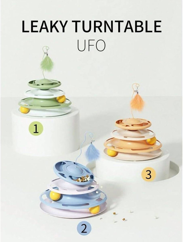 Яскраві м'ячики катаються по колу, привертаючи увагу та утримуючи цікавість навіть найприємніших кошенят і дорослих кішок. Перо на пружинці додає елемент несподіванки, спонукаючи вихованця до активних рухів.