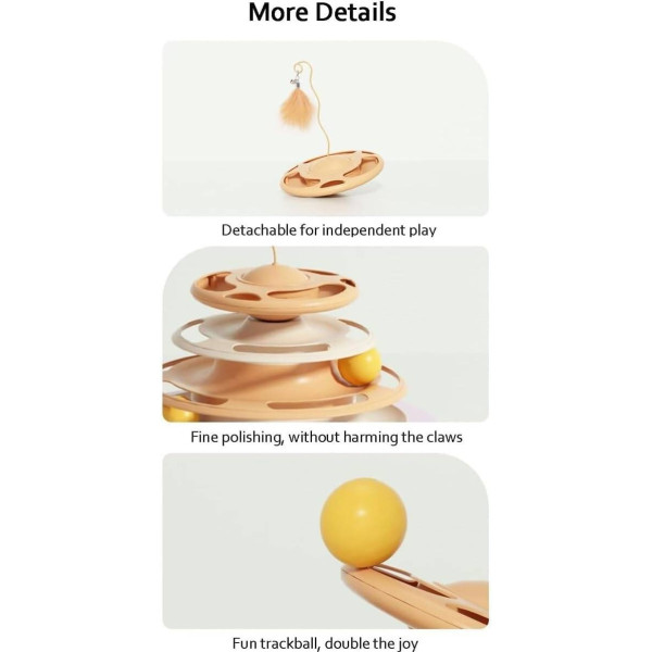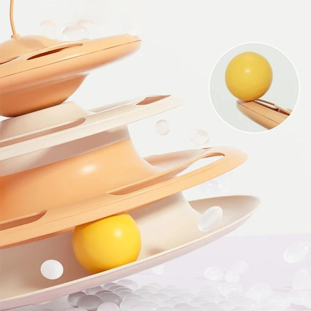Ігровий трек для кішок на 4 рівні дає змогу вихованцю активно гратися та розважатися вдома. На кожному рівні можна розмістити один або кілька м'ячиків, створюючи різноманітні варіанти гри, які стимулюють азарт і активність кішки.