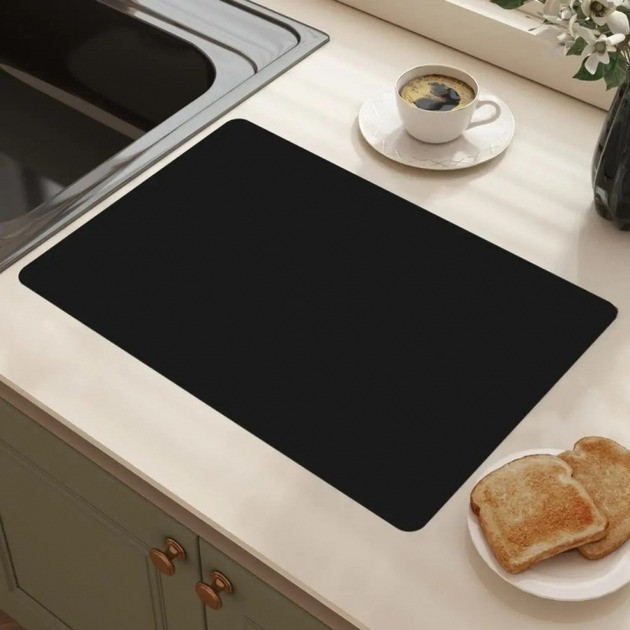 - Швидковисихний матеріал: Виготовлений із діатомової землі, килимок ефективно вбирає вологу та швидко сохне, забезпечуючи чистоту та гігієну на кухні.