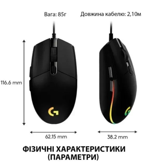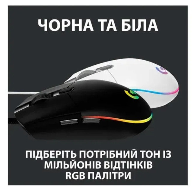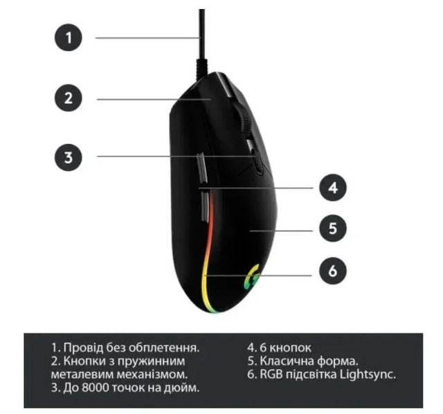 Комп'ютерна ігрова миша G102 LIGHTSYNC RGB — 6 кнопок, 8000 DPI, настроювана підсвітка, оптичний сенсор