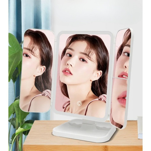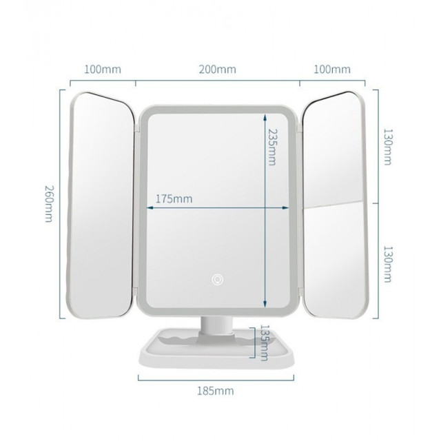 Косметичне настільне потрійне LED дзеркало XW 810 з акумулятором, сенсорне, 3 режими підсвічування