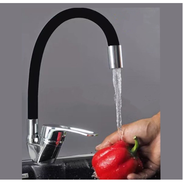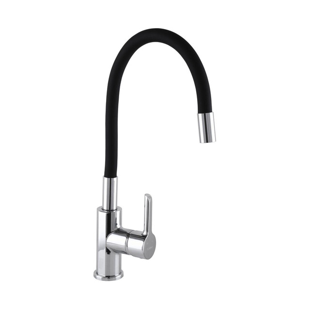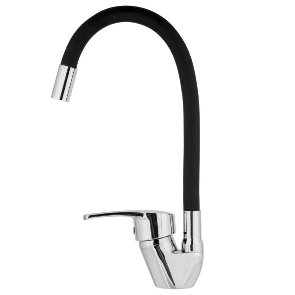 Кухонний змішувач Rubineta Flexy 33 BK поєднує стильний дизайн, високу функціональність і надійність. Гнучкий чорний вилив дає змогу спрямовувати струмінь води в будь-яке місце, полегшуючи миття посуду, овочів або наповнення ємностей.