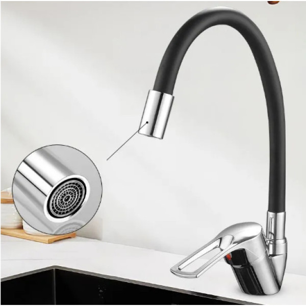 Кухонний змішувач Rubineta Flexy 33 BK з гнучким виливом, латунь, хром, аератор Neoperl, чорний