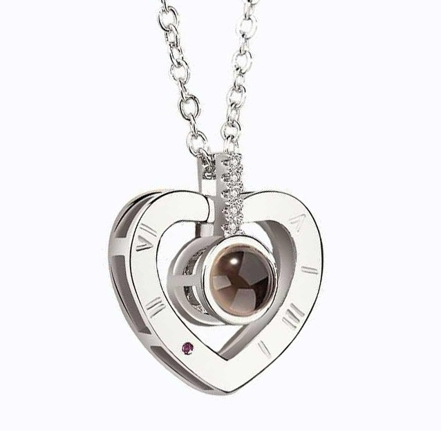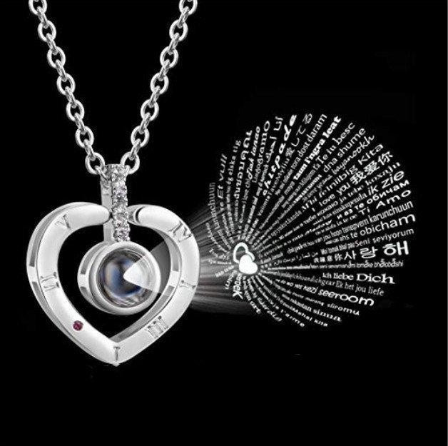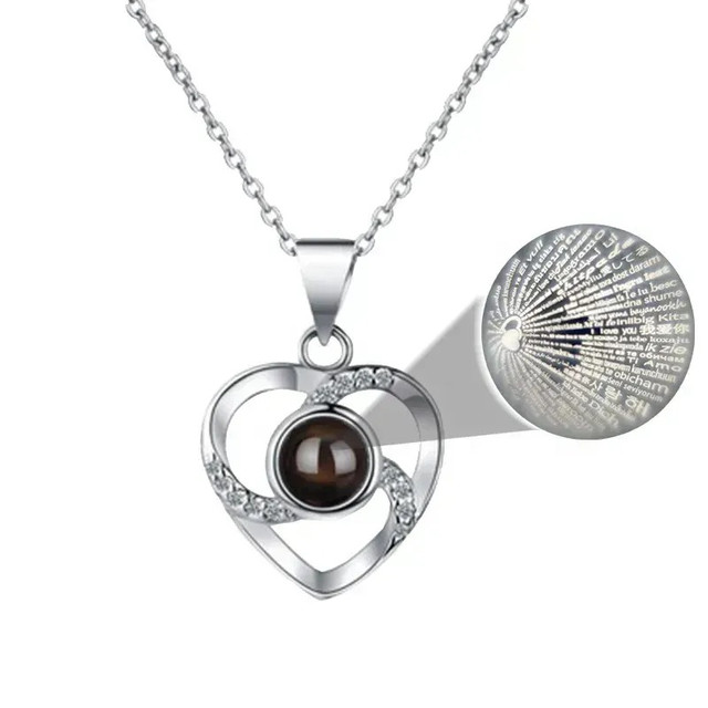 Кулон із проєкцією "Я тебе люблю" на 100 мовах світу, серце зі срібним покриттям