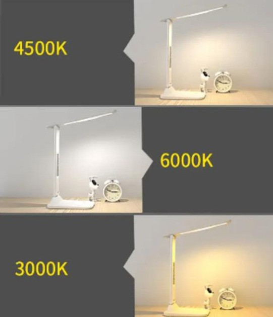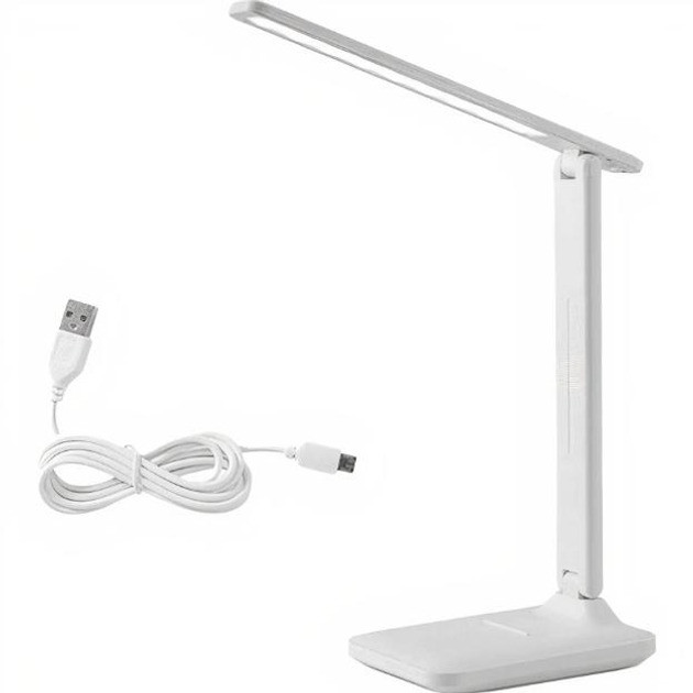 Плафон змінює положення не тільки вгору та вниз, але й прокручується на 180 градусів вліво-вправо. Можна спрямувати лампу саме на ту частину столу, де світло необхідне найбільше, не витрачаючи час на перенесення лампи. Сенсорна кнопка — легким дотиком змінюйте режими світіння.