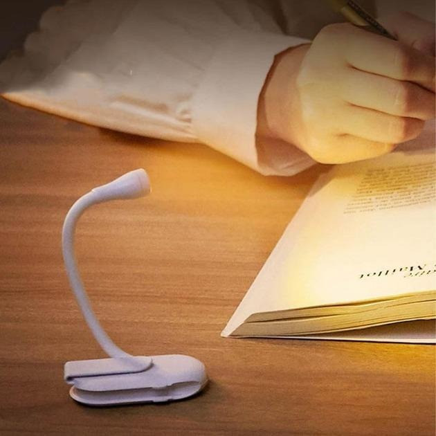Мініпортативна лампа на прищіпці HA-71 для читання з гнучкою шийкою й USB зарядкою