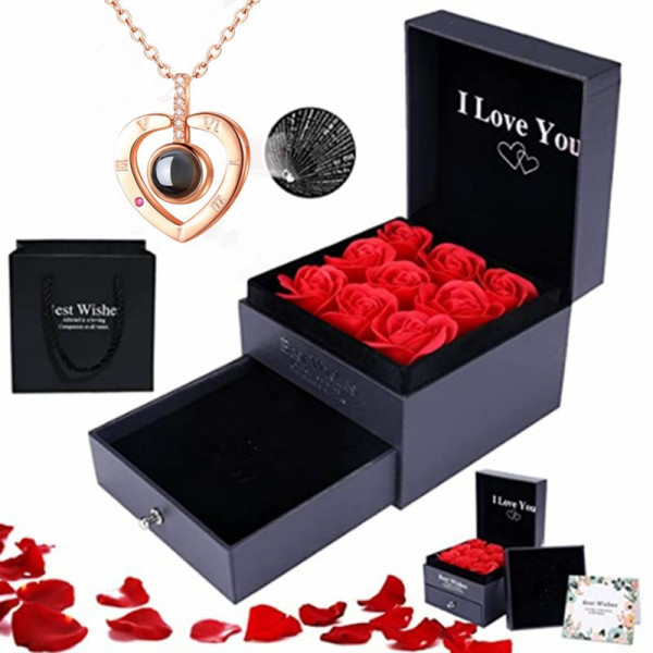 Набір мильних троянд Best Wishes 9 штук у чорній подарунковій коробці з кулоном