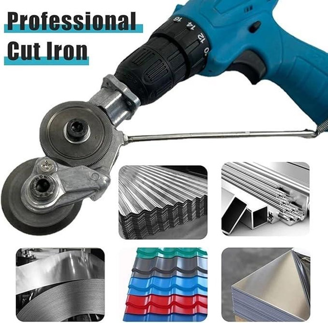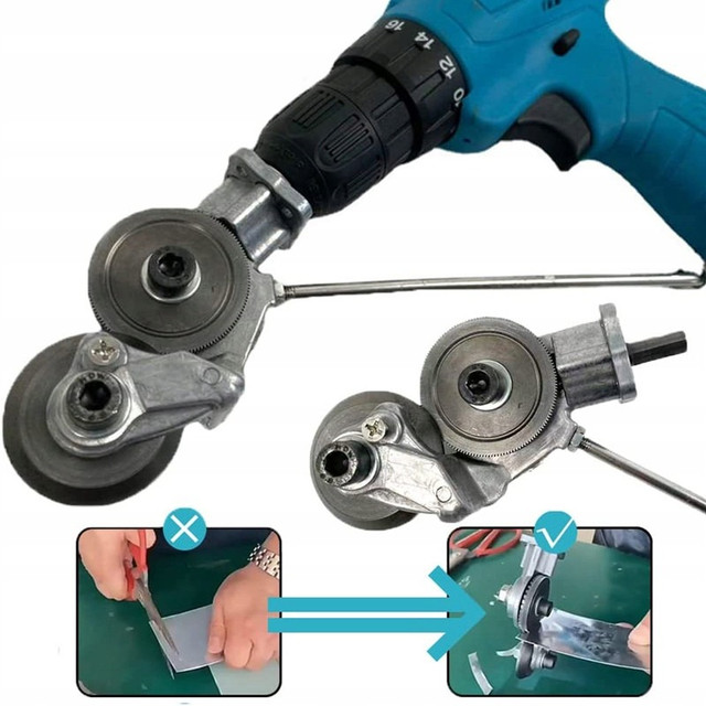 Насадка-ножиці для різання металу на шурупокрут або дриль — це універсальний інструмент, який перетворює ваш шурупокрут або дриль на потужні електричні ножиці для точного та швидкого різання листового металу. Вона ідеально підходить для роботи з різними матеріалами: від тонких листів сталі й алюмінію до лінолеуму та пластику, забезпечуючи чистий зріз без задирок і деформації.