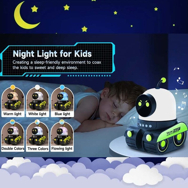 Нічник-проєктор Droid WH-E03 з Bluetooth — багатофункціональний світильник для дитячої кімнати, який створює затишну й безпечну атмосферу для сну та ігор. Ідеальний вибір для дітей будь-якого віку, нічник поєднує в собі світловий проєктор, динамік для колискових і керування через Bluetooth.