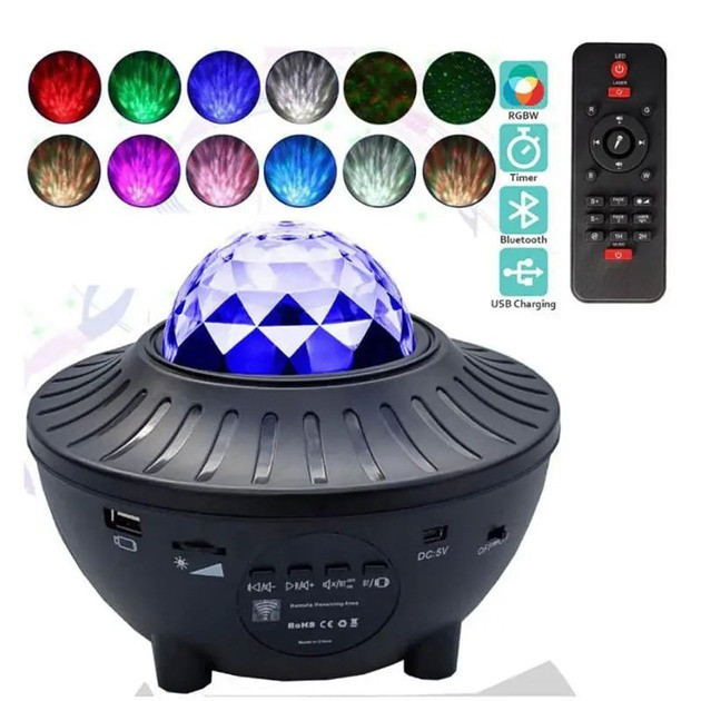 Завдяки вбудованому Bluetooth-модулю та динаміку проєктор можна під'єднувати до телефона або іншого пристрою, щоб слухати музику. Світлові ефекти можуть синхронізуватися з ритмом, перетворюючи лампу на ідеальний атрибут для вечірок, медитацій або романтичних вечорів.