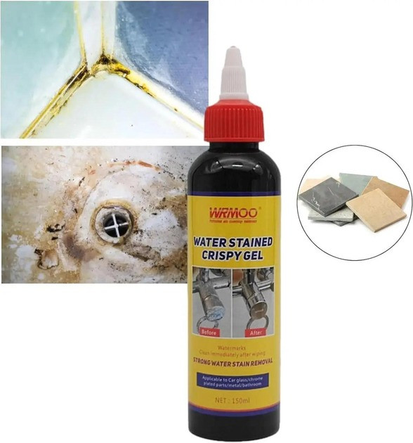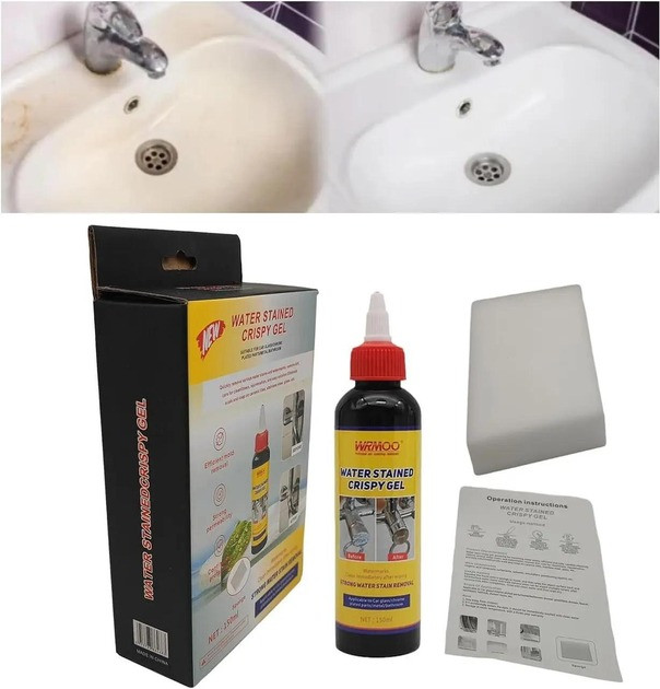 Очисний гель WRMOO 150 мл із губкою — це ефективний і зручний засіб для видалення застарілих плям від води, вапняного нальоту та мильних відкладень на кухні та у ванній. Завдяки потужній гелевій формулі засіб глибоко проникає в забруднення, швидко розчиняючи навіть найстійкіші відкладення й повертаючи поверхням їх первинний блиск.