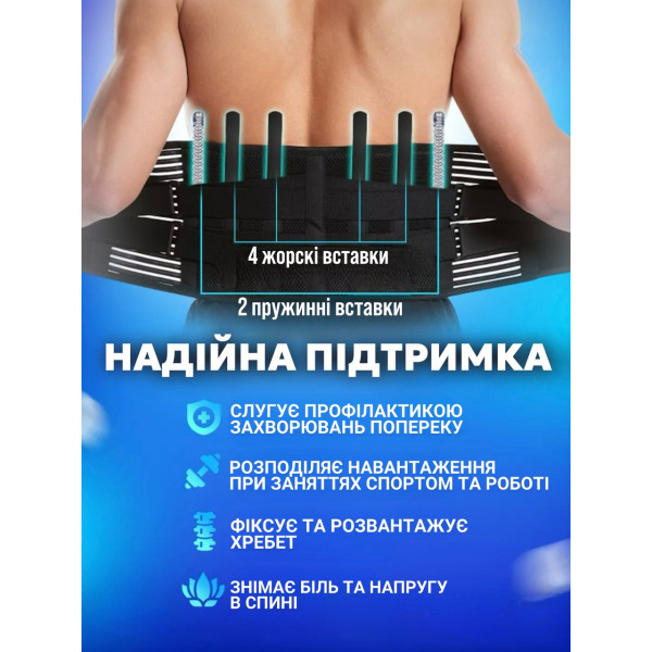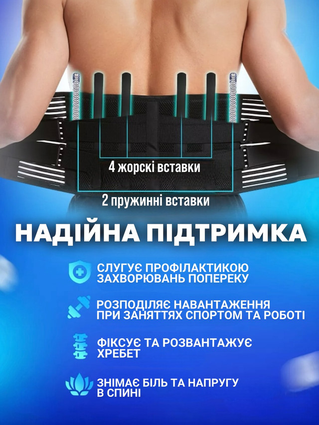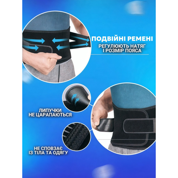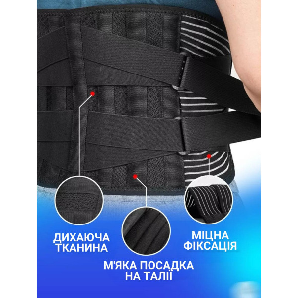 Поперековий ремінь з еластичними пластинами — ортопедичний засіб для підтримки та захисту поперекового відділу спини. Ремінь призначений для чоловіків і жінок і допомагає знизити навантаження на спину під час фізичних навантажень, занять спортом, довгого сидіння або відновлення після травм.