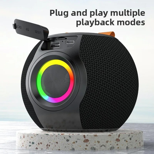 Колонка підтримує різні джерела відтворення: потокове під'єднання через Bluetooth, мапу TF, USB-накопичувач або FM-радіо, що дає змогу слухати улюблену музику в будь-якому місці, навіть без інтернету.