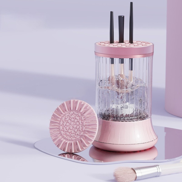 Портативна щітка для чищення пензлів для макіяжу Rayhomer із сенсорним керуванням і USB, 300 мл рожевий