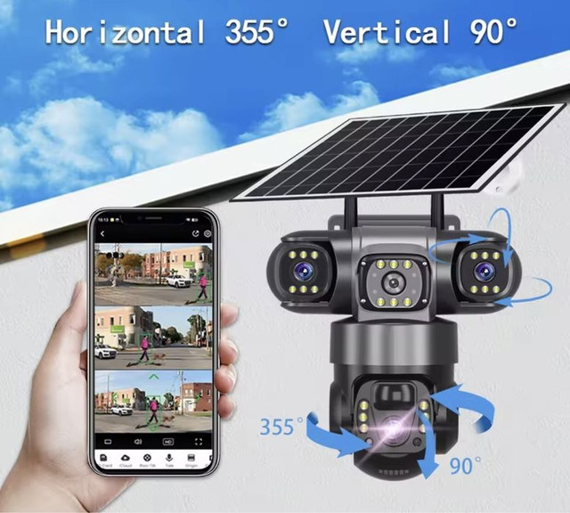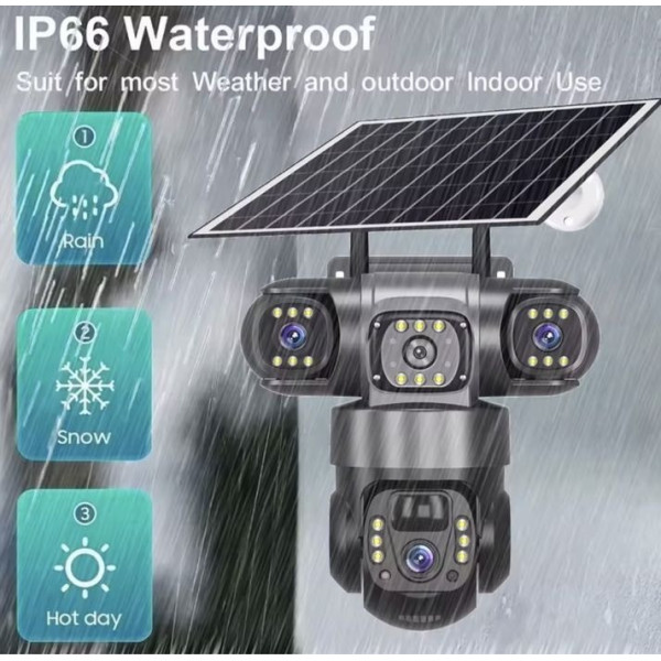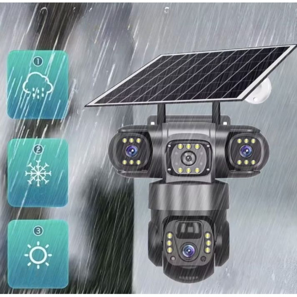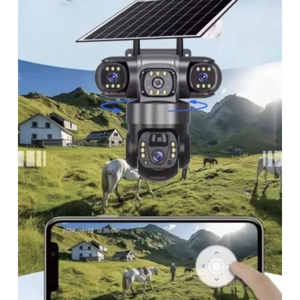 Повністю автономна камера відеоспостереження з двома об'єктивами забезпечує цілодобовий огляд на 360° без мертвих зон. Головна перевага пристрою — повна незалежність від електроенергії. Завдяки вбудованому акумулятору на 10000 mAh і сонячній панелі на 7 Вт камера може працювати безперервно, а в екорежимі — до 72 годин.