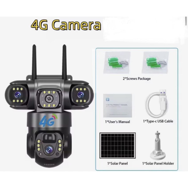 Повністю автономна 4G камера відеоспостереження V380Pro з двома об'єктивами, сонячною панеллю й акумулятором 10000mAh