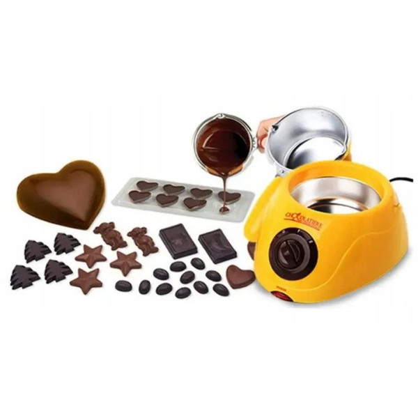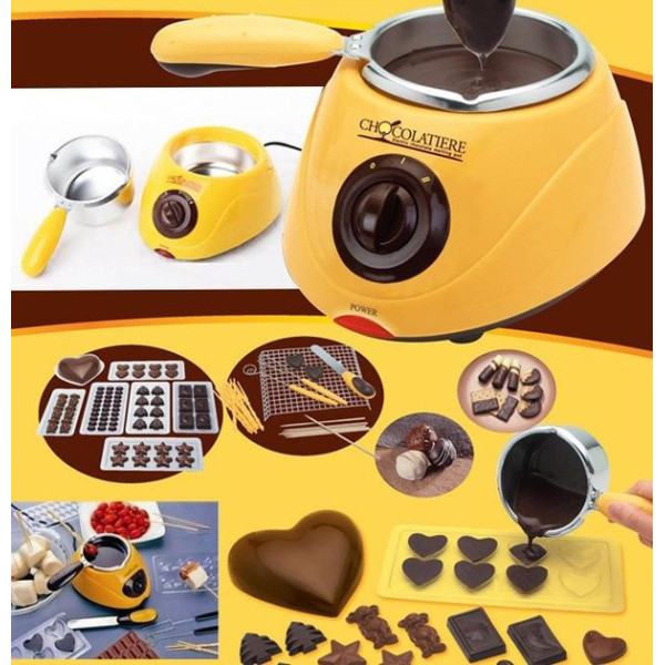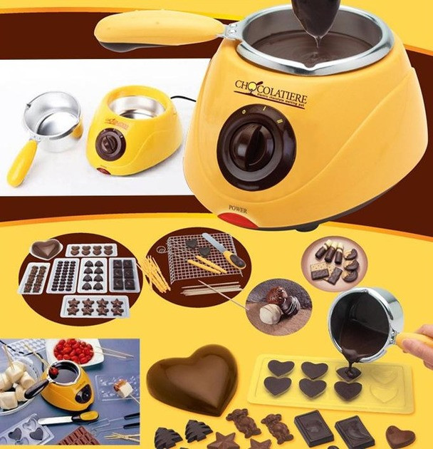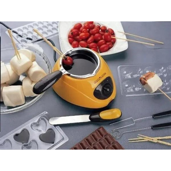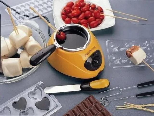 Прилад для приготування шоколадного фондю стане ефектною прикрасою святкового столу та чудовою розвагою для всієї родини. Пристрій підходить для розтоплення будь-якого типу шоколаду — темного, молочного або білого. З його допомогою можна готувати класичну фондю з фруктами, ягодами та зефіром, а також створювати домашні цукерки з різноманітними начинками.
