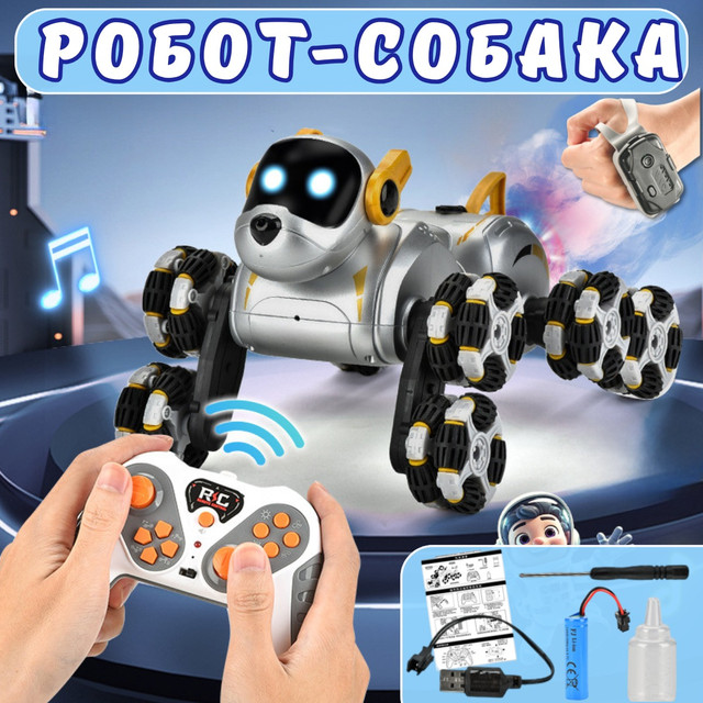 Радіокерований робот-собака Eight Wheeled ROBOT DOG з парою, світлом і подвійним керуванням пультом і браслетом