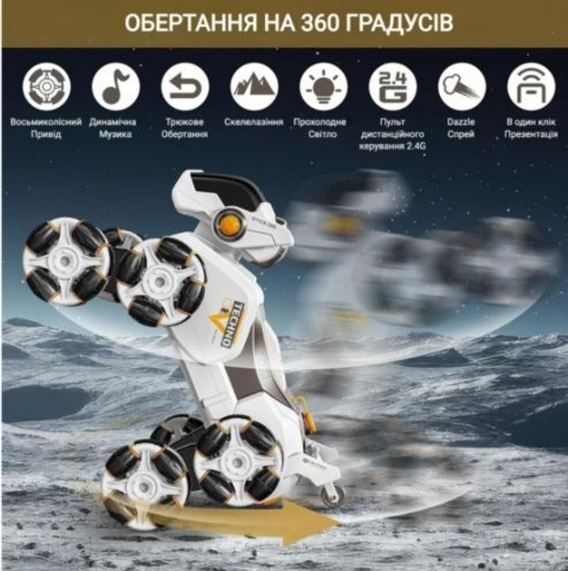 Особливості: 8 рухомих коліс, керування жестами, демонстраційний режим