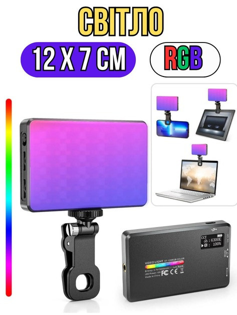 RGB лампа для блогерів і стримерів на прищіпці з регулюванням яскравості та поворотом 360° AND 5265