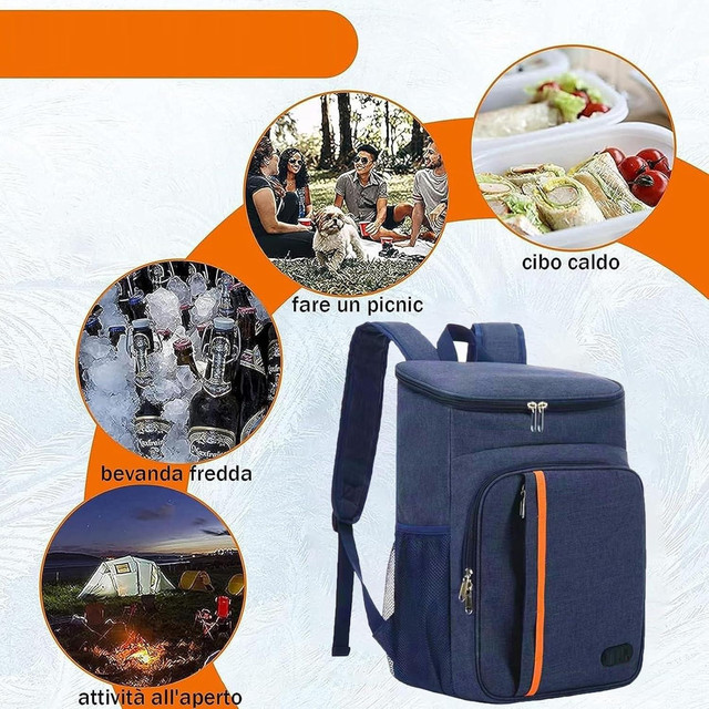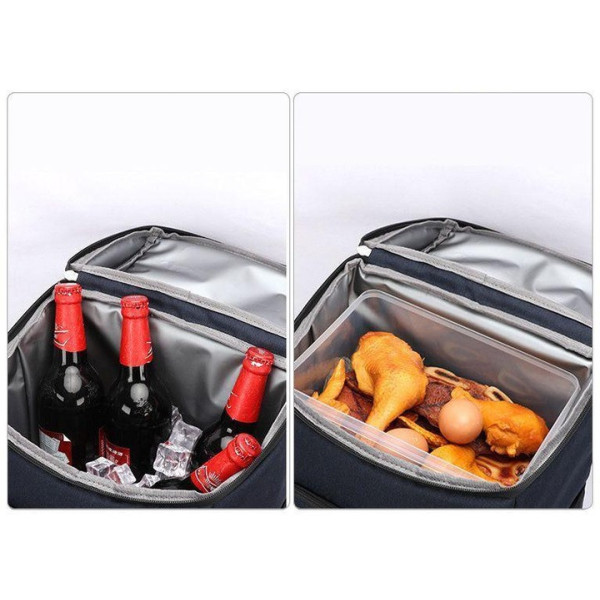 Рюкзак-холодильник TMBOX-03, об'ємом 18 літрів, — практичне та зручне рішення для зберігання їжі та напоїв у дорозі, на роботі, пікніку або в подорожі. Надійна термоізоляція з пінополістиролу та внутрішнє покриття PEVA зберігають температуру до 12 годин, даючи змогу продукти залишатися свіжими, а напої — охолодженими або теплими.