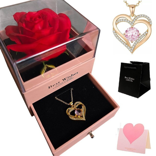 Подарочный набор "I Love You" с вечной розой и колье — это символ любви и нежности, созданный для самых дорогих моментов. Он станет идеальным подарком для Дня Святого Валентина, годовщины, Дня матери, Рождества или предложения.