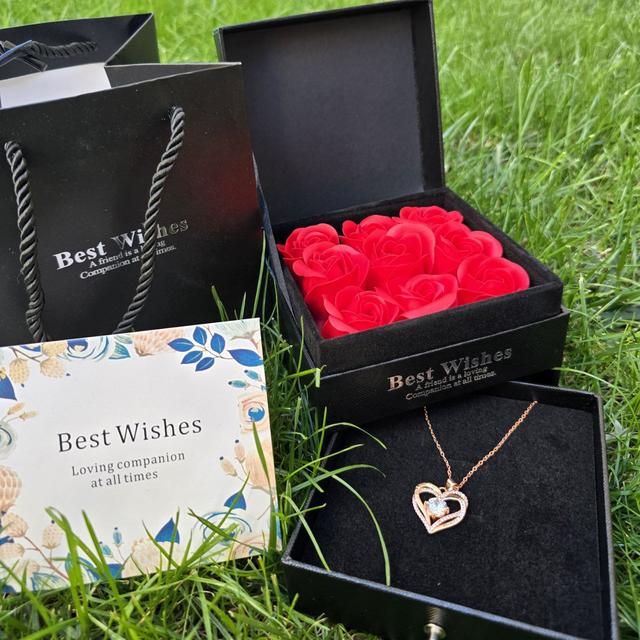 Подарочный набор роз из мыла Best Wishes в шкатулке с кулоном
