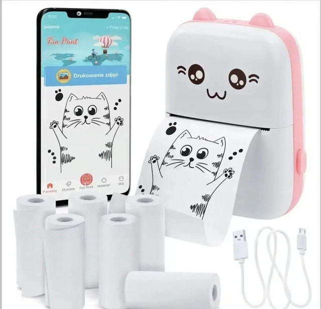 Портативный беспроводной термопринтер Printer – компактное устройство для удобной и быстрой печати прямо со смартфона. Подключение выполняется по Bluetooth через фирменное приложение FunPrint. Принтер работает по технологии термопечати, поэтому не требует чернил или картриджей – печать осуществляется на специальной термобумаге.