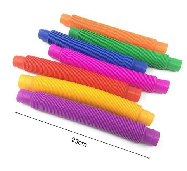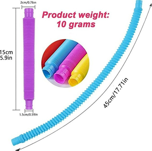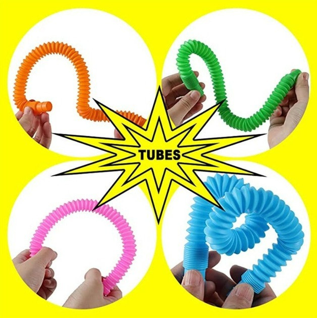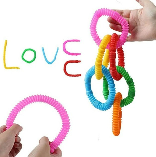 Игрушки Pop Tube — это комплект из 12 гибких разноцветных трубок, которые способствуют сенсорному, моторному и когнитивному развитию ребёнка. Каждая трубка легко растягивается, сгибается, соединяется между собой и издаёт характерный щелкающий звук, стимулируя слух и осязание.
