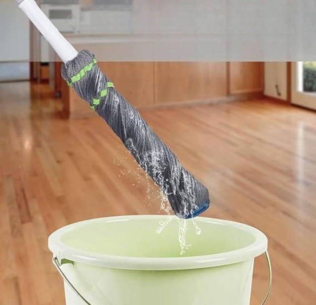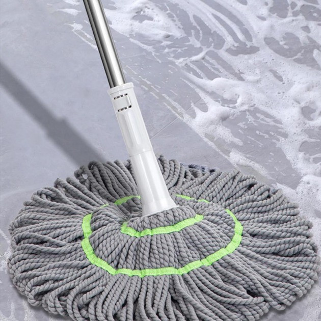 Самовіджимний механізм дає змогу вичавлювати насадку, не торкаючись руками брудної води, що робить прибирання максимально гігієнічною. Телескопічна ручка регулюється за довжиною, забезпечуючи комфортне використання за будь-якої висоти. Конструкція швабри виготовлена з міцного металу та пластику, що гарантує надійність і довговічність.
