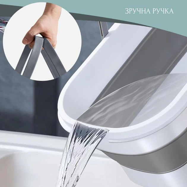 Складане відро для прибирання та прання Barrel LY-630, силіконове відро з ручками 15 л сіро-біле
