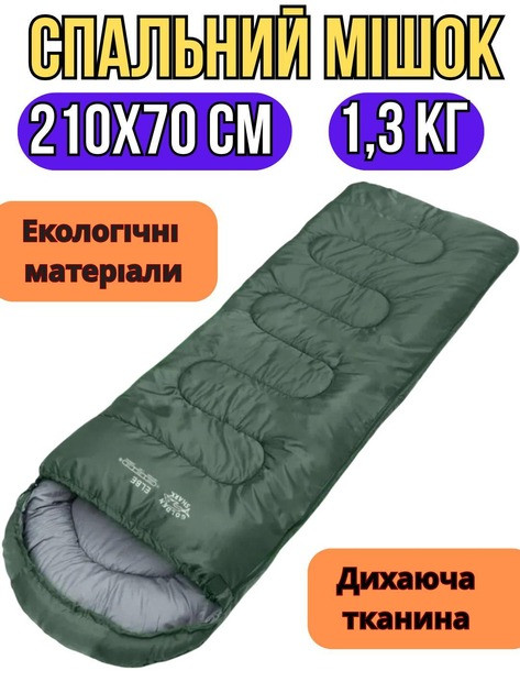 Практичний спальний мішок створений для комфортного відпочинку під час кемпінгу, походів або подорожей на природі. Завдяки оптимальним розмірам 210 × 70 см він підходить для більшості користувачів, забезпечуючи вільний простір для сну. Зовнішній шар виготовлений із міцного, дихаючого поліестеру, який добре утримує тепло та не пропускає вологу. Внутрішній наповнювач із бавовни гарантує м’якість і збереження тепла навіть у прохолодну погоду.