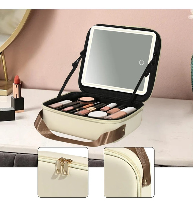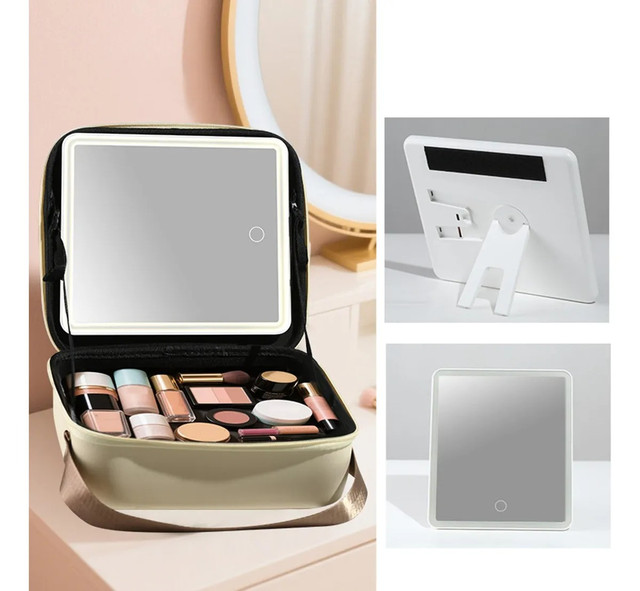 Елегантна сумка-органайзер для косметики з дзеркалом і LED-підсвіткою — стильне рішення для зберігання і зручного використання косметичних засобів. Вбудоване дзеркало з м'якою світлодіодною підсвіткою робить макіяж комфортним навіть в умовах недостатнього освітлення.