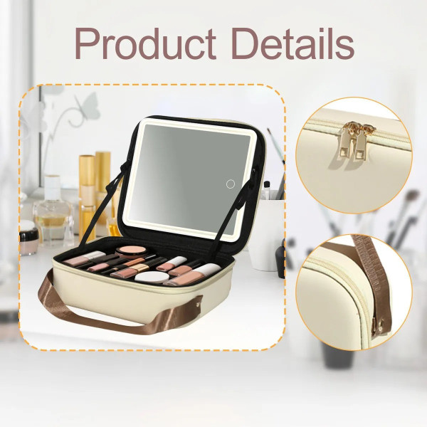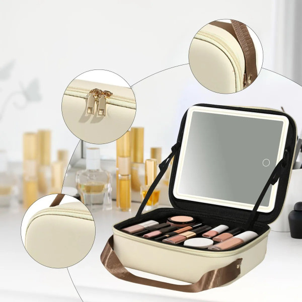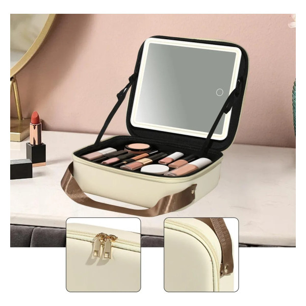 Сумка-органайзер для косметики з дзеркалом і LED-підсвіткою, бежева