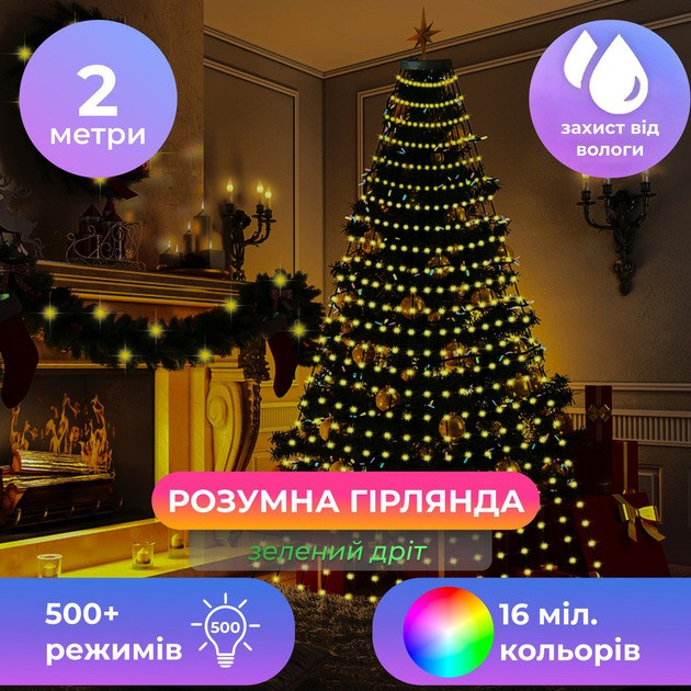 Ця гірлянда підходить для використання як удома, так і на вулиці, має низьке енергоспоживання й довговічні світлодіоди з ресурсом понад 50 000 годин.